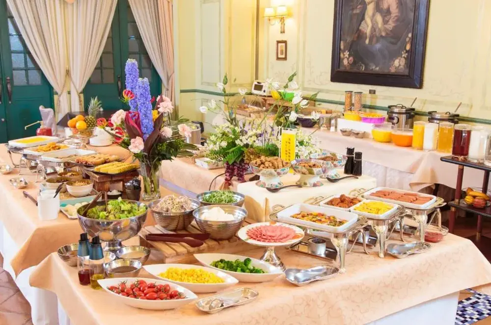 すべてのプレート、カトラリー、メガネ、およびその他の食器が消毒されています